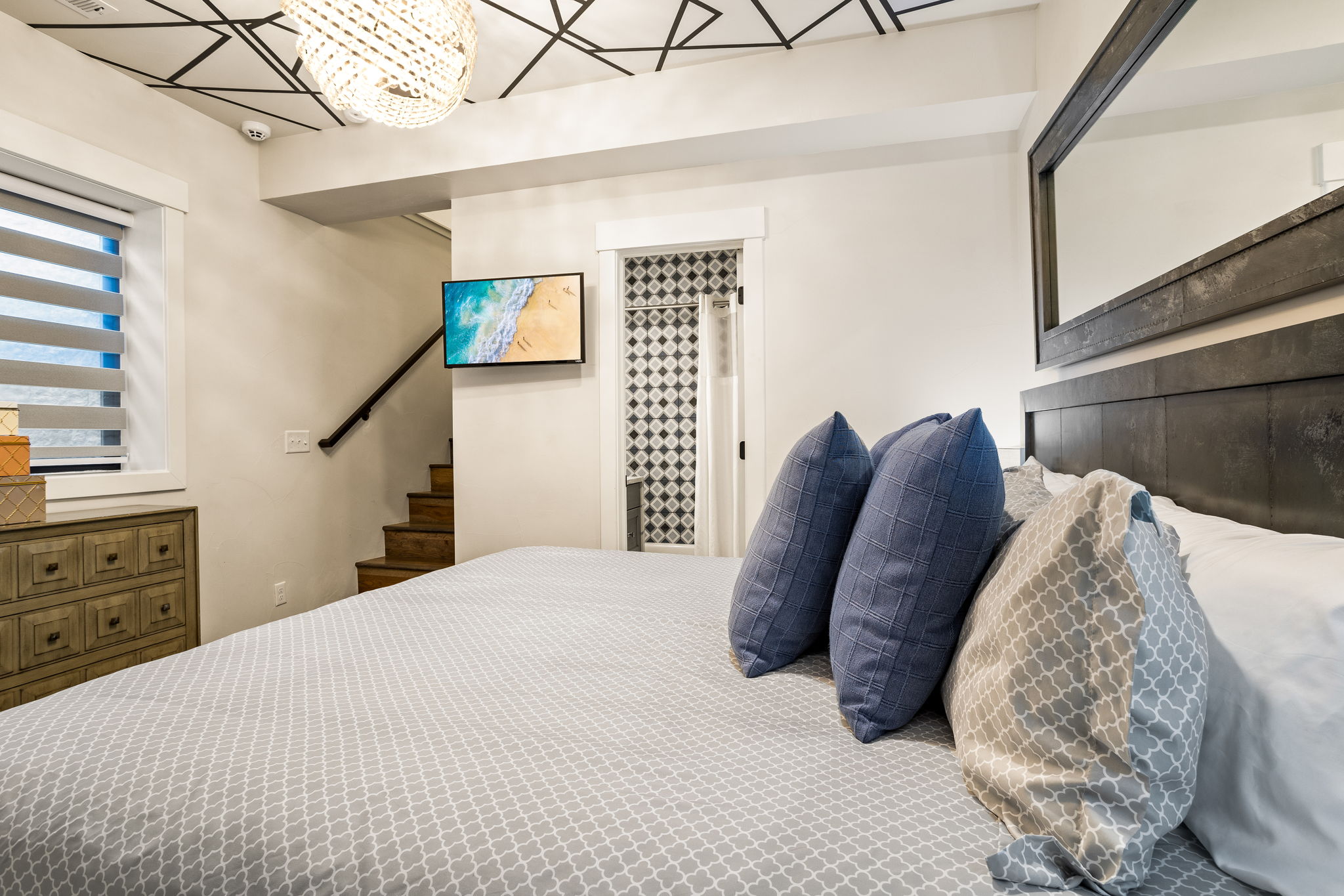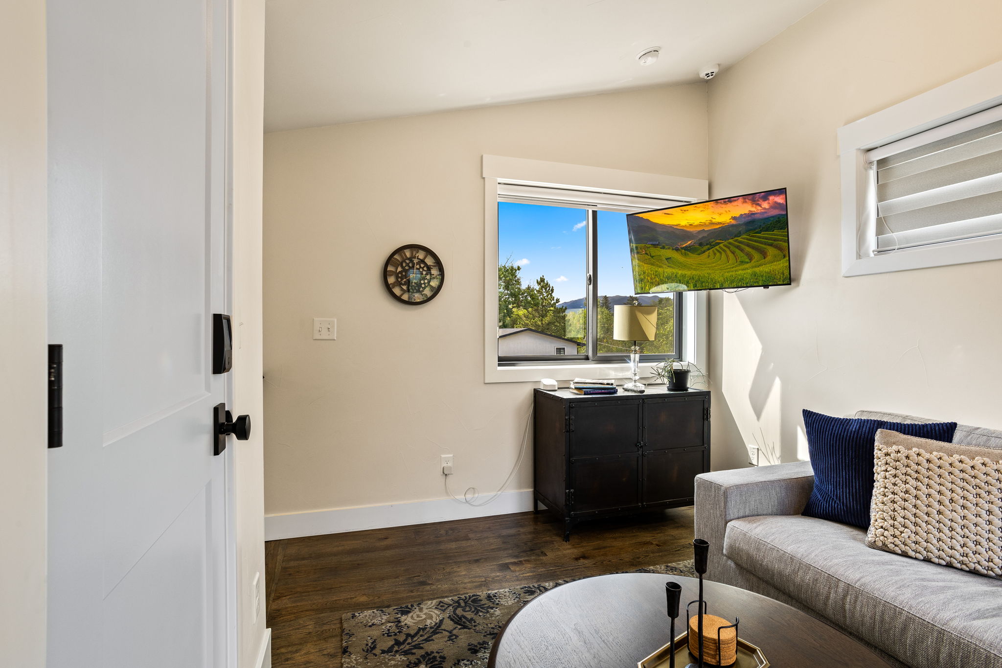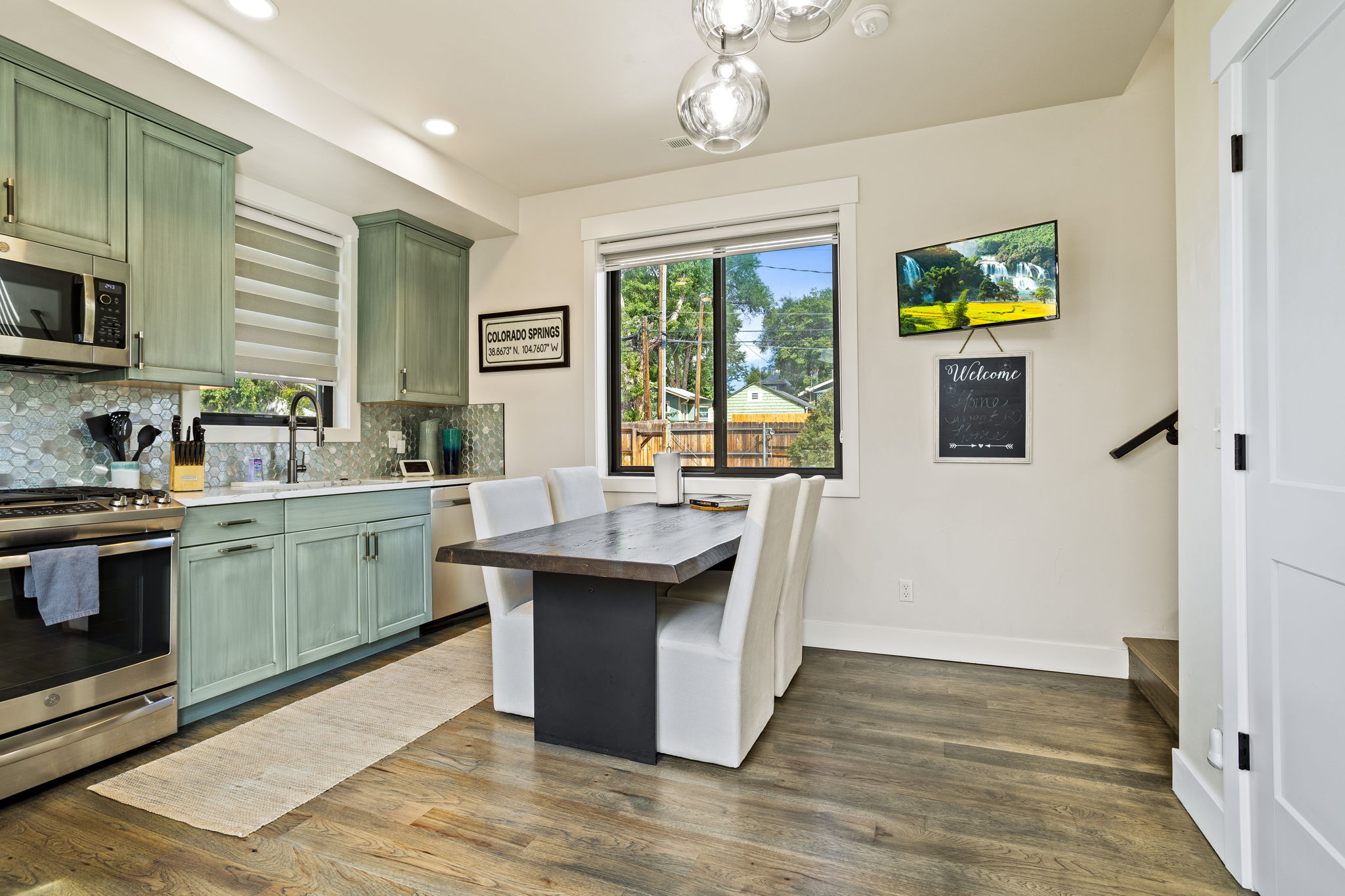 Wake up to breathtaking views of Pikes Peak every morning or unwind on the patio with cool Colorado evenings. Inside, you’ll find a fully equipped kitchen — ideal for preparing delicious meals and baking treats — plus a cozy sectional perfect for reading or relaxing after a day of adventure. This property truly has everything you need for an exceptional getaway. From stunning views and luxurious accommodations to charming details and peaceful surroundings, it's designed to make your stay memorable. Whether you're celebrating a special occasion or just seeking a peaceful escape, this luxury home provides an idyllic setting for your Colorado adventure. Enter through the kitchen area into this unique layout featuring a bedroom and bathroom on the lower level, with the living room situated on the top floor for added privacy and elevated views.