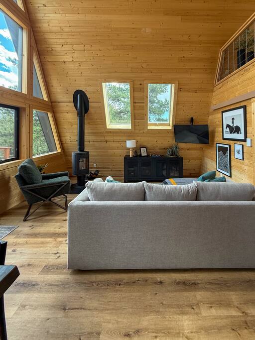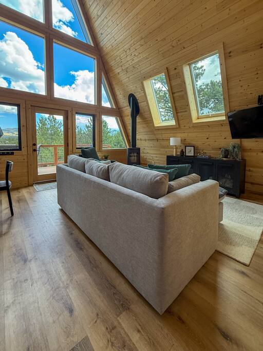 Escape to this stunning modern A-frame cabin just 15 minutes from downtown Westcliffe, a designated Dark Sky Community where the stars shine like nowhere else. Tucked away on a private 5-acre property with a secluded driveway, this stylish retreat offers crisp mountain air, modern comforts, and an authentic Colorado wilderness experience. Inside, enjoy one bedroom, a loft sleeping area, and a pull-out sofa, sleeping up to 6 guests. The open-concept living space features floor-to-ceiling windows framing the Wet Mountains, a cozy wood stove, and a fully equipped modern kitchen. Step outside to unwind on the deck, breathe in the fresh alpine air, and watch abundant wildlife pass through the property. Perfect for nature lovers, the cabin offers easy access to Rainbow Trail, hiking, fishing, and off-roading — plus trailer hookups for outdoor gear or campers. Whether you’re looking for a romantic getaway, a mountain base for adventure, or peaceful stargazing under pristine skies, this Westcliffe A-frame captures the very best of Colorado living. Highlights: • 1 bedroom + loft + pull-out sofa (sleeps up to 6) • 5 secluded acres with abundant wildlife • Minutes from Rainbow Trail & outdoor recreation • Trailer hookups and ample parking • 15-minute drive to Westcliffe restaurants and shops • Located in a Dark Sky Community – unmatched stargazing • Modern kitchen, wood stove, and panoramic mountain views